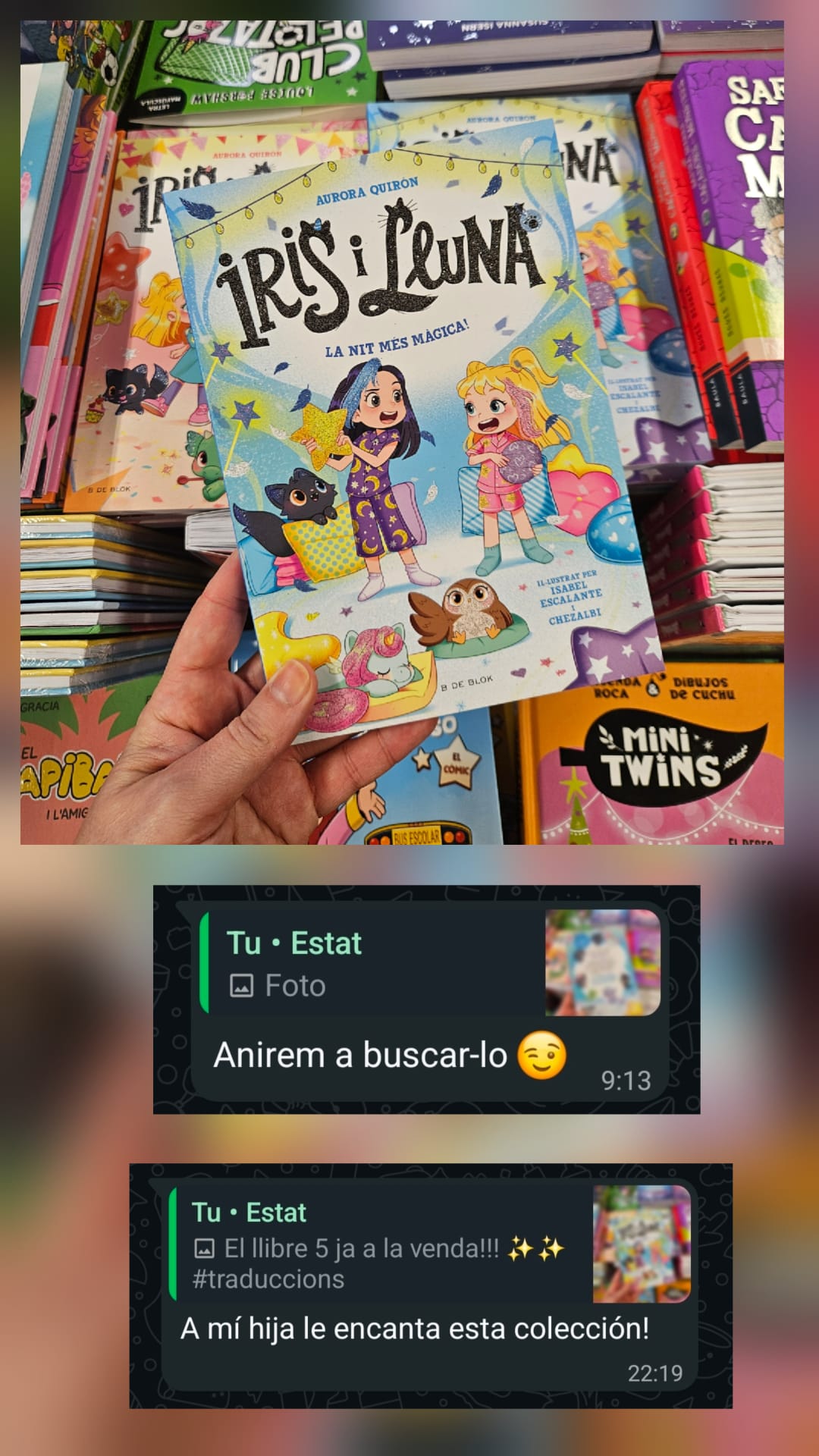 Pero, sobre todo, y después de las horas de tecleo puro y duro, de ajustar ritmos, de probar opciones, de leer en voz alta para ver si la frase respira bien…, saber que ese texto llega a quien tiene que llegar. Y recibir mensajes del tipo «¿Ya ha salido el último? Iremos a buscarlo 😉», «¡a mi hija le encanta esta colección!» e incluso «¿cuándo sale el siguiente?».