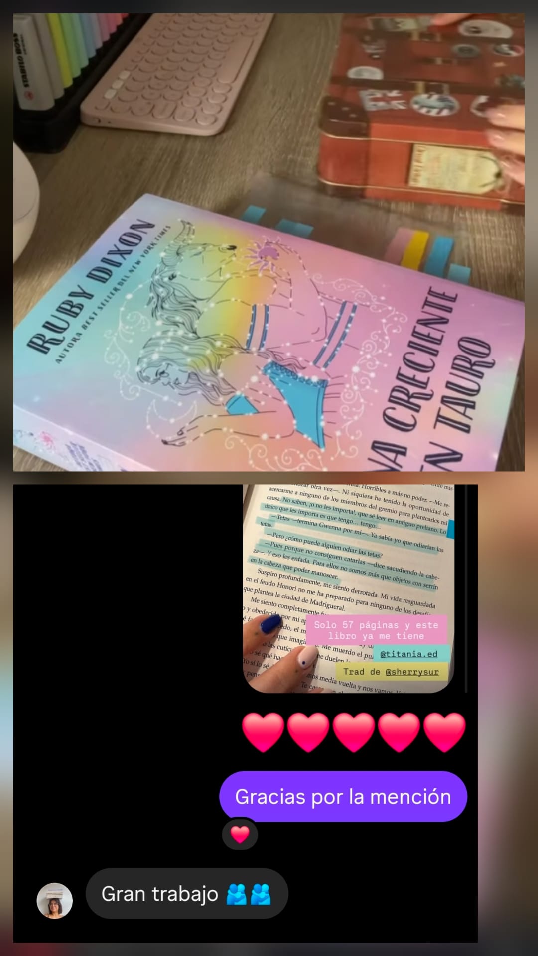 Y ahí es donde todo encaja. Ahí la traducción deja de ser proceso y se convierte en una experiencia real: en una niña esperando el siguiente libro de la serie; en una historia que ha cruzado de lengua y ahora forma parte de su mundo. Que sí, vale, el brilli-brilli de la cubierta ayuda, pero ya me entendéis.