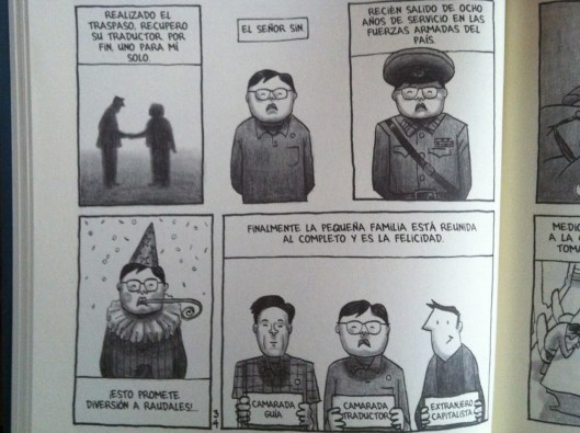 Delisle, francocanadiense, tuvo que echar mano de un traductor/intérprete que le hizo de acompañante y cicerone. Las condiciones sociopolíticas del país hacen que la profesión se aparte un poco de nuestros cánones en cuanto a la figura del traductor en sí y la manera de presentar la realidad. A lo largo del cómic, el traductor le explica o le oculta lo que quiere, con lo que el autor (que no es ingenuo) se va empapando de la realidad manipulada del día a día en la capital.