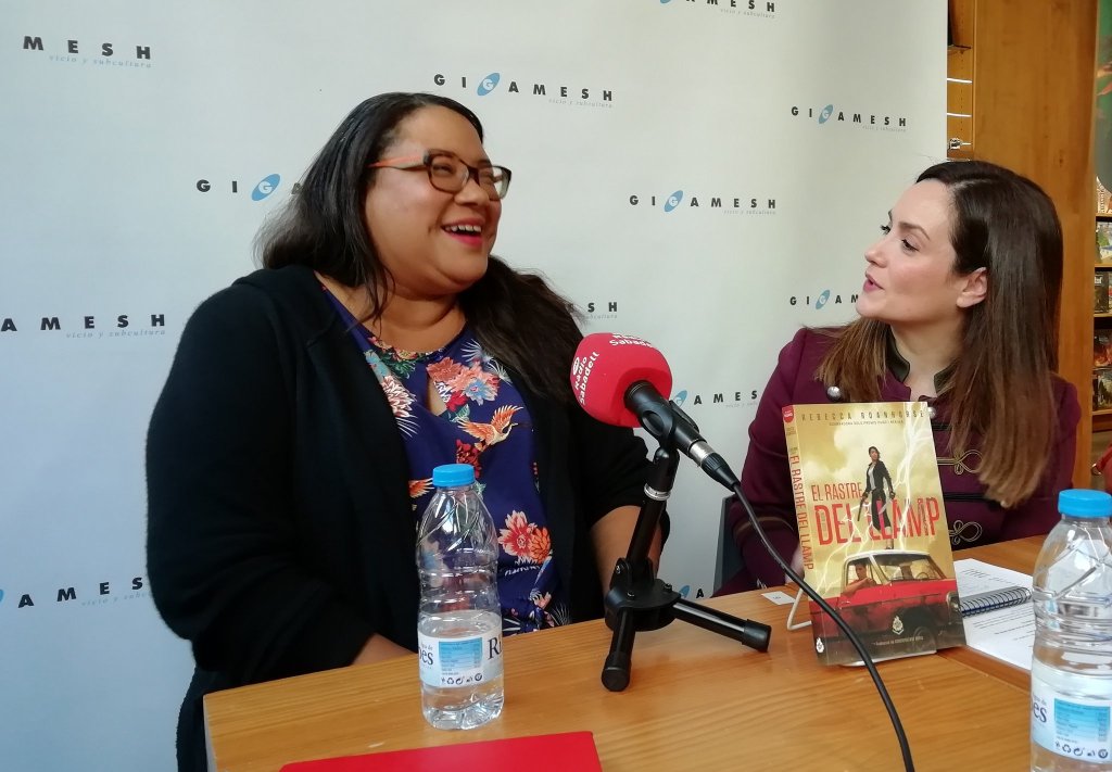 Pero lo que me empujó a salir de la burbuja de mi despacho fue hacer de intérprete para la autora en su visita a Barcelona. Los editores de Mai Més, más majos que las pesetas, me pidieron si podía echarles una mano aunque no fuera intérprete. Necesitaban interpretación para la presentación de la autora a varios periodistas y blogueras y, posteriormente, para el encuentro con lectores en la librería Gigamesh, templo friqui por excelencia.